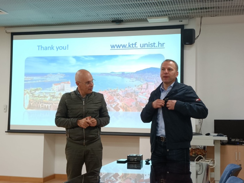 El decano de la Facultad de Química y Tecnología, Prof. Erceg, ha presentado a los profesores de la Facultad los títulos que se imparten en esta facultad, así como las líneas de investigación de éstas. En esta reunión se han intercambiado ideas para favorecer la movilidad de los estudiantes y profesores entre ambos centros.